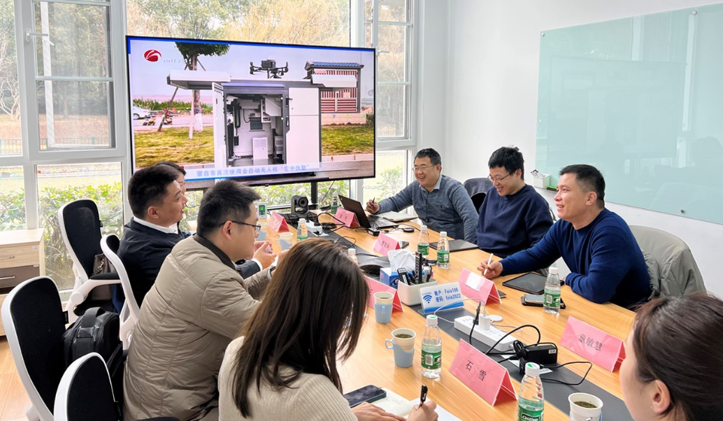 常州市钟楼区一行领导参观了qy球友会(中国)智能办公区以及展厅,并参观了无人机自动飞行系统工作全流程,包括舱门开合、无人机升降和飞行、前端AI图像识别等。