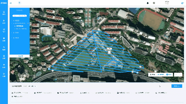 ■功能介绍:仿地飞行,是指无人机在作业过程中,顺利获得设定与已知三维地形的固定高度,使得飞机与目标地物保持恒定高差。睿云管控平台支持导入高程文件,并基于该区域的高程,在三维空间内规划仿地飞行航线,实现相对地表的等高飞行。