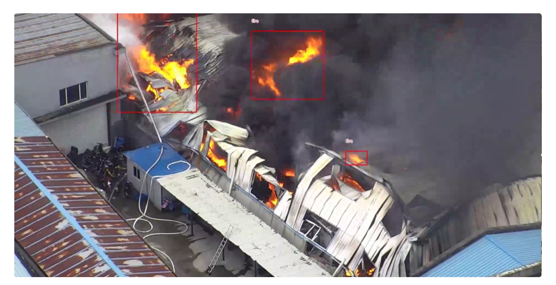 当指挥中心接到火情时,指挥人员对机场下达“指点飞行”任务,无人机立即飞向目标点。在无人机飞行过程中,借助烟火识别算法,系统会自动精准识别定位火源,对起火点等情况进行侦察,跟踪回传现场情况,为火情研判给予助力。